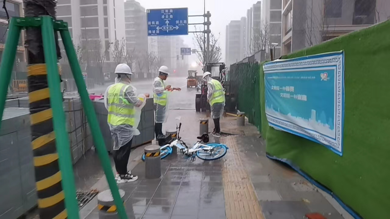 當(dāng)天下午,寧波市高新區(qū)建設(shè)局下發(fā)應(yīng)急搶險(xiǎn)任務(wù),眾誠工程公司“應(yīng)急搶險(xiǎn)救援隊(duì)”第一時(shí)間趕往相關(guān)危險(xiǎn)路段。從接到通知、準(zhǔn)備、集結(jié)、出發(fā)到抵達(dá),“應(yīng)急搶險(xiǎn)救援隊(duì)”一氣呵成,耗時(shí)僅20分鐘。抵達(dá)后,“應(yīng)急搶險(xiǎn)救援隊(duì)”對需要重點(diǎn)關(guān)注的存在安全隱患的人行道等低洼路段進(jìn)行拉線警戒,嚴(yán)防強(qiáng)降雨可能引發(fā)的城市內(nèi)澇等問題引起次生災(zāi)害。在風(fēng)雨中行動(dòng)的這2個(gè)小時(shí),“應(yīng)急搶險(xiǎn)救援隊(duì)”爭分奪秒,用又好又快的實(shí)際行動(dòng)檢驗(yàn)了公司應(yīng)急搶險(xiǎn)意識和應(yīng)急反應(yīng)能力的卓越,也彰顯了公司上下聯(lián)動(dòng)、齊心協(xié)力切實(shí)保障人民群眾生命財(cái)產(chǎn)安全的氣魄與決心。
