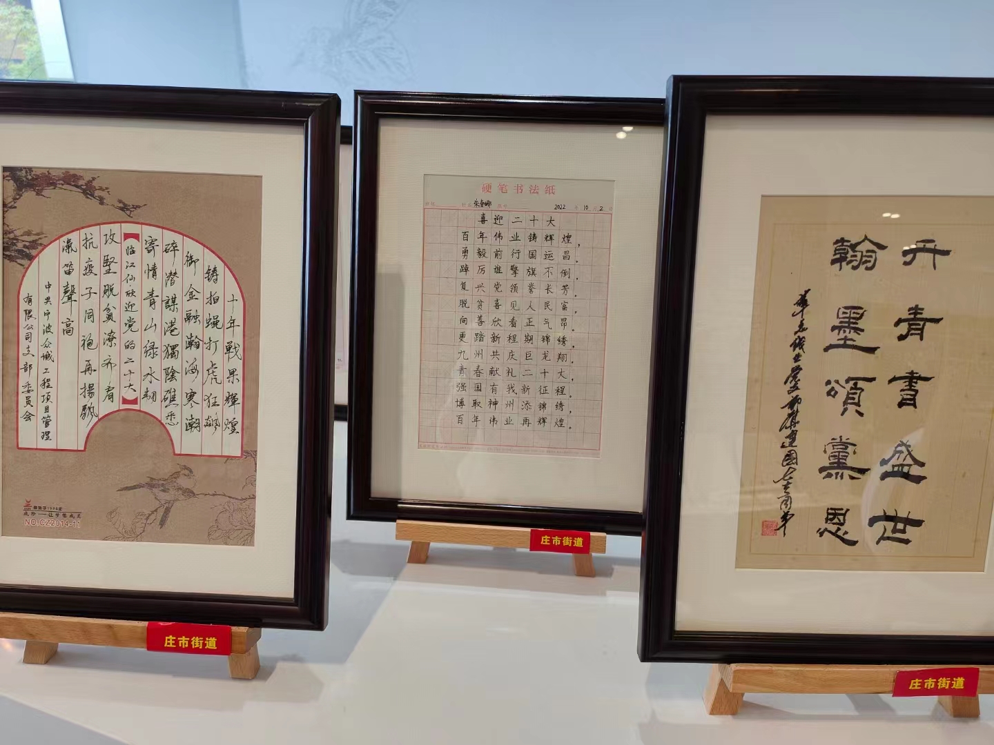 收看完激動人心的二十大報告后,各黨支部負責人還參觀了街道組織策劃的各企業(yè)喜迎二十大的書法展覽。這些作品主題鮮明、內(nèi)容豐富、取材廣泛,融時代性、思想性和藝術(shù)性于一體,熱情謳歌了黨的豐功偉績和祖國的巨大變化,充分表達了“堅定不移跟黨走”的理想信念,全面展現(xiàn)了“腳踏實地、砥礪前行”的時代精神風(fēng)貌。